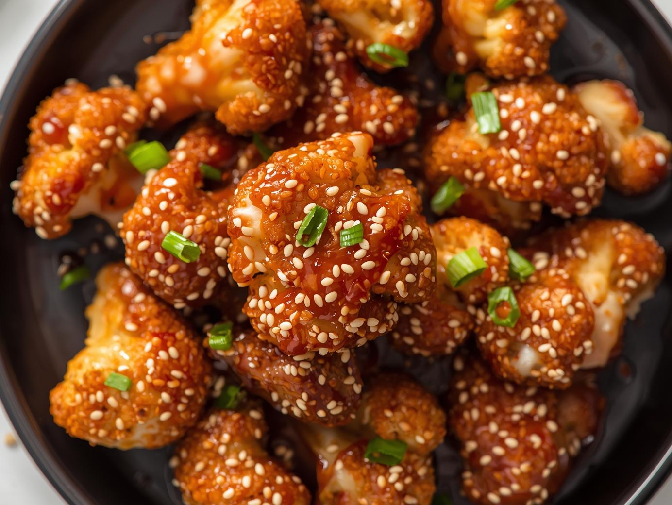 Low-Carb Sugar-Free Sesame Cauliflower "Chicken"